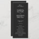 The deep black background and crisp white typography exude sophistication, making it perfect for formal, fine-art, or contemporary weddings. Personalize the names, date, and ceremony details to make this program uniquely yours. Designed to coordinate with the SABRINA Wedding Invitation Collection, this piece completes your elegant stationery suite with understated luxury.