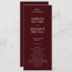 This elegant single-panel design features a deep wine-red background with crisp ivory text, creating a timeless and romantic look. Perfect for classic, modern, or formal weddings, this program offers understated luxury and effortless sophistication. Personalize the text with your own names, date, location, and ceremony details to make it truly yours. Designed to coordinate with the SABRINA Wedding Invitation Collection, this template ensures a cohesive and elegant stationery suite across your entire event.