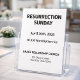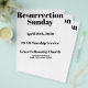 Editable Resurrection Sunday church flyer template featuring a clean modern layout. Perfect for pastors and church leaders preparing for Easter service announcements. Easily customize the church name, date, and service time for bulletins, welcome tables, and community outreach.