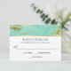 Um design RSVP de casamento luxuoso em um padrão marmoreado de menta e abstrato de ouro. O estilo de texto contemporâneo tem um espaço branco generoso com lindos pares de fontes de script e texto serif que adicionam estilo saboroso.