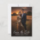 Design minimalista moderno. Salve os cartões de anúncio Data com fundo preto e texto branco simples no verso, e texto branco com sua foto favorita no lado frontal.