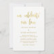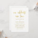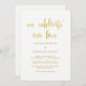 O convite de casamento Elegante minimalista apresenta a moderna falsa tipografia de ouro "nós celebramos nosso amor" em um cenário branco.
