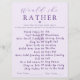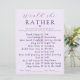 Add laughter and lively conversation to your celebration with this Modern Amethyst “Would She Rather” Bridal Shower Game. Designed in soft lavender with elegant amethyst typography and a delicate heart accent, this fully customisable stylish game card keeps guests engaged while guessing the bride’s favorite things. Perfect for modern, romantic showers, it coordinates beautifully with the Modern Amethyst collection and creates a fun, memorable moment for everyone.