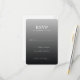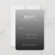 This wedding RSVP card features a sleek, modern design with a gradient background transitioning from light to dark gray. The layout is clean and balanced, emphasizing the bold, uppercase "RSVP" text at the top center, followed by smaller, aligned details for date and response options. Customizable fields allow guests to indicate their attendance status and number of attendees, making it both functional and stylish. The minimalist aesthetic, sans-serif typography, and professional tone make this card ideal for contemporary weddings, ensuring clarity and elegance in communication.