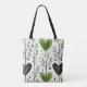 This modern floral tote features hand-drawn botanicals and bold green heart blooms in a clean Scandinavian-inspired style. Perfect for everyday errands, markets, and cozy indie vibes.