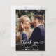 A Mão Moderna Inscreve O Cartões de agradecimentos Fotográfico De Casamento. Obrigado de casamento do Na moda moderno seu modelo de cartão postal com uma foto vertical do cheio na frente com o texto "Obrigado" em uma fonte de script de tipografia escrita escrita à mão robusta, em branco na fotografia. Placa de dois lados com 2 fotos. Personalize o nome personalizado e a mensagem do obrigado. O nome modelo inclui um pequeno coração branco. Se preferir escrever manualmente a sua nota, basta eliminar o texto de amostra para obter mais espaço. Se você precisar de ajuda ou item correspondente, entre em contato comigo!
