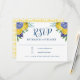 Este cartão RSVP de casamento de limão moderno é perfeito para um casamento de primavera ou verão. Este elegante design apresenta limões de aquarela brilhantes e bonitos com flores azuis elegantes e verde. Um padrão amarelo e branco decora o verso do convite. Projetado para você pelo Blackberry Boulevard.
