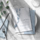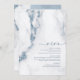 Um fundo de abstrato que lembra o mármore brilhante em tons de azul empoeirado através do azul e do branco de aço é o pano de fundo para textos elegantes e layouts modernos de design nos pedaços desta bela suíte de casamento. O menu de casamento mostrado aqui contém texto alinhado à direita, bordado por mármore. Adicione facilmente seus próprios nomes, data de casamento e seleções de menu usando a modelo fornecida. Procure ID816 para ver outras peças e opções de cores para este conjunto.