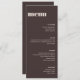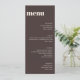 This wedding menu in brown features clean typography and a neutral color palette that works with many wedding themes. Personalize the menu items to match your reception meal and course selections. A simple, stylish option for wedding table settings and place settings. Designed to coordinate easily with modern and minimalist wedding decor.