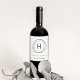 Etiquetas de vinho modernas, impressionantes e elegantes são uma forma perfeita de personalizar os seus favores de casamento de vinho. O design preto e branco chic apresenta o seu monograma inicial de solteiro enquadrado por uma borda circular abstrato. Personalize com seu sobrenome, data de casamento e variedade de vinho.