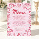 💗🍽️ Elevate your celebration with this Modern Pink & Red Hand Drawn Valentine Menu, designed in a romantic coquette aesthetic with whimsical hearts, bows, cupids, florals, and playful Valentine doodles. This elegant yet fun menu card adds the perfect finishing touch to your Valentine bridal shower, baby shower, Galentine’s party, or sweetheart-themed celebration. The soft pink background paired with bold red hand-drawn illustrations creates a stylish, Pinterest-worthy tablescape that guests will love. Display on place settings, dessert tables, drink stations, or buffet lines for a cohesive and polished look. Coordinates beautifully with matching invitations, welcome signs, favor tags, games, plates, napkins, and décor from the full Valentine collection. 💌✨