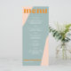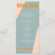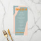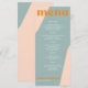 Abstract shapes retro vintage 70s style unique wedding menu card with bold typography in a pastel trendy modern dusty blue, soft pink and orange chic color palette. +++++++ Please note that all the colors are changeable. ++++++++++++ Suitable for informal casual stylish contemporary weddings.