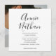 This modern script wedding invitation flat card features elegant calligraphy typography and a clean black-and-white layout for a timeless, sophisticated look. Designed as a flat (non-folded) card, it highlights the couple’s names with flowing script while maintaining a refined, minimalist aesthetic.