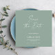 Modern Elegant script sage green typography wedding save the date announcement.