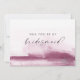 Esta moderna carta de proposta de dama vermelha-d-água é perfeita para um casamento contemporâneo na moda. A coleção de design minimalista, clássica e elegante apresenta traços simples de pincel de cor de água em tons de joias bonito. Personalize a placa com o nome da noiva e da dama de honra. Personalize a parte traseira do cartão com uma mensagem personalizada.