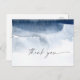 Este obrigado azul-aquarela moderno que você faz do postal é perfeito para um casamento de na moda. A coleção de design minimalista, clássica e elegante apresenta traços simples de pincel de cor de água em tons de joias bonito. Personalize a parte traseira do cartão postal com seus nomes, seu endereço de devolução e uma mensagem de obrigado. Como alternativa, deixe o vazio da seção modelo para enviar uma nota personalizada e ponderada em cada cartão após a sua chegada. Essas cartas podem ser usadas para um casamento, chá de panela ou qualquer evento especial.