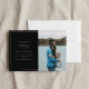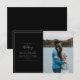 Anuncie seu noivado de estilo com este convite minimalista ao cartão com fotos, apresentando um retrato romântico de um lado e um fundo negro ousado com uma fina borda de cinza do outro. O elegante roteiro moderno adiciona sofisticação, enquanto o espaço dedicado permite que você compartilhe todos os detalhes importantes para sua próxima celebração. Este design chic combina luxo e personalidade, fazer uma maneira perfeita de convidar convidados para o seu dia especial.