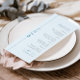 Adicione um detalhe especial ao Bar do seu filho Mitzvah com o nosso personalizável menu de janto de festas azul-claro, azul-marinho e branco do bar mitzvah que apresenta uma tipografia moderna ousada e uma vibração casual divertida.