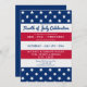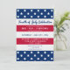 Convite moderno para comemoração de 4 de julho. Personalize este modelo de convite de festas de 4 de julho para a celebração do dia da independência com amigos e familiares. Possui riscas e estrelas vermelho patrióticas, brancas e azuis.
