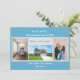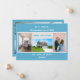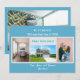 Cartão de anúncio minimalista, elegante e em constante movimento com 3+1 fotos personalizadas, os nomes dos membros da família e o texto "Nós Mudamos! Venha nos visitar logo!" + o novo endereço e número de telefone fixo na frente para você personalizar. Fundo azul-turquesa pálido moderno, pálido e chico, com escrevendo branco, azul e lacrimogênio. Por favor, note que você pode manter o cartão como está, ou transferi-lo para um cartão postal e, assim, manter apenas o design frontal, com três fotos de quatro.