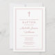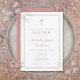 Este convite de batismo moderno e elegante com borda rosa pó pode ser personalizado com todas as informações da sua celebração especial. Criado por Thisisnotme©