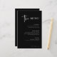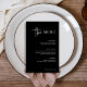 Este elegante menu de janto de casamento preto é simples e minimalista, mas muito na moda devido ao guião branco moderno manuscrito e ao layout limpo.