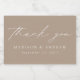 Os rótulos modernos dos vinhos espumantes de casamento contêm a frase "obrigado você" que aparece em um roteiro elegante de caligrafia branca em fundo esticado. Personalize as etiquetas de vinhos espumantes com seus nomes e data do casamento. O simples obrigado de casamento que você rotula é perfeito para usar para recepções de casamento, jantas de ensaio e festas de noivado.