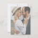 Simples e elegante, este design de cartão de agradecimento de casamento moderno minimalista apresenta um modelo de foto na frente do cartão para carregar a foto desejada. O simples texto de agradecimento na frente do cartão pode ser movido para qualquer lugar que fique melhor sobre a foto. Se desejar mover o texto, basta escolher "clique para personalizar ainda mais" na parte inferior do modelo de design, que abre a edição completa do cartão. Em seguida, você pode selecionar o texto de agradecimento posteriormente e arrastá-lo para o local ideal no cartão. Uma sobreposição branca muito transparente é usada sobre a foto para clareá-la ligeiramente para um visual moderno. A parte traseira do cartão tem uma mensagem de agradecimento de exemplo que você pode usar como está ou personalizar com sua redação e os nomes da noiva e do noivo.