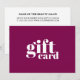 Design elegante e personalizável de cartão de certificado de presente para profissionais da beleza ou moda. Design simples e sofisticado com fundo roxo vermelho, fontes em negrito.