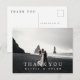 O texto espaçado moderno sobrepõe a sua escolha de imagem. Personalize facilmente este postal com a sua foto favorita do casamento! A parte traseira é vazio para a sua mensagem de obrigado manuscrito.
