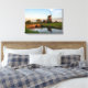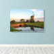 impressão de paisagem canvas de um moinho de vento próximo a uma pequena vala com uma ponte na borda de um grande campo no campo holandês ao pôr do sol em Aarlanderveen, Países Baixos. decoração de excelentes!
