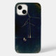 Um trabalho artístico original em uma capa de telefone. Este trabalho de arte apresenta um adulto e uma criança caminhando em direção a duas grandes moinhos de vento. Esta pintura foi criada para retratar as mudanças climáticas e a luta pela sociedade para que caminhasse para fontes de energia sustentáveis. A foto é do meu sobrinho e eu caminhando por um campo coberto de neve em direção a um moinho de vento em Ontário.