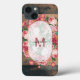 Uma tela chic de rosas e flores cor-de-rosa vintage projetada em torno de um arco oval de ouro moderno com fundo de madeira rústica. Monograma personalizado e data estabelecida posicionada no centro da arca oval. Um presente de aniversário ideal, decoração infantil, arte infantil, decoração de quarto, decoração doméstica ou presente para qualquer outra ocasião especial. Personalize o monograma e o texto e torne-o seu.
