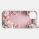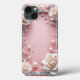 Moldura decorativa elegante com rosas cor-de-rosa suaves e pérolas brilhantes com gemas cintilantes em torno de um fundo rosa claro, criando uma estética luxuosa e sofisticada.
