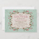 Um design doce com delicadas flores cor-de-rosa com folhagens e caules marrons que criam uma moldura para sua personalização. O fundo é um padrão xadrez em tons de azul-turquesa. Perfeito para chás de bebê, aniversários ou qualquer celebração feminina. (FP)