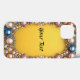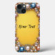 Moldura dourada intricadamente desenhada e ornamentada, apresentando gemas coloridas e pérolas em um fundo amarelo vibrante, exalando luxo e elegância.
