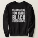 Simple BLACK HISTORY MONTH sweatshirt, celebrating its centenary from Negro History Week to Black History Month. Simple, bold typography reads CELEBRATING 100 YEARS BLACK HISTORY in white. Ideal souvenir sweatshirt to wear to celebrate 100 years of Black History Month. Also in white.