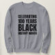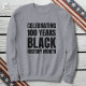 Simple BLACK HISTORY MONTH sweatshirt, celebrating its centenary from Negro History Week to Black History Month. Simple, bold typography reads CELEBRATING 100 YEARS BLACK HISTORY in black. Ideal souvenir sweatshirt to wear to celebrate 100 years of Black History Month. Also in black.