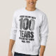 Souvenir BLACK HISTORY MONTH CENTENNIAL sweatshirt, celebrating its centenary from Negro History Week to Black History Month. Newspaper-look design shows large 100 YEARS with founder Dr Carter G Woodson inside. Bold typography reads NEGRO HISTORY WEEK and BLACK HISTORY MONTH 1926–2026. Ideal souvenir sweatshirt to wear to celebrate 100 years of Black History Month. Also in black.