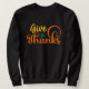 Aceite o espírito de gratidão e Ação de Graças com nosso "Dê Obrigados, Suéter de Ação de Graças". Esta camisola acolhedora e na moda é o traje perfeito para a época de férias, lembrando-nos de apreciar as bênçãos nas nossas vidas e expressar o nosso agradecimento. Quer você esteja comemorando com a família ou amigos, esta camisola adiciona calor e significado às festividades.