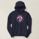 Crachá do Alabama com bandeira do Alabama e bandeira dos EUA, cores, forma arredondada. Emblema do Alabama. Selo do Alabama. Coleção dos Estados Unidos.