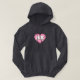 Esta camisola de capuz apresenta um coração calmo, legal e colecionado cor-de-rosa com um centro lavado em branco contendo as letras negrito, branca, maiúsculas AK, a abreviação oficial para o Alasca, a última fronteira.