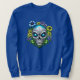 Crânio extraterrestre de açúcar alienígena em manchas de flores com olhos azuis, um ser extraterrestre celeste. Bonito presente para aqueles que amam a OVNIlogia.
