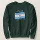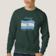 Este vestuário de qualidade apresenta um gráfico de bandeira argentina na frente e a palavra 'Argentina' abaixo com um lugar para o seu nome ou mensagem acima. Todo o texto, exceto o nome do país, pode ser alterado para atender às suas necessidades.