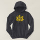 Um estranho capuz de Halloween com arte botânica de uma folha amarela e estranhos olhos assustadores atrás dela.