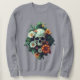 Um pixel Cabeça de crânio rodeada por flores no estilo geométrico. Perfeito para amantes da estética escura, fãs de horror e entusiastas da arte retrô.