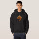 árvore solitária com laranja e folhas amarelas vibrantes, sobre fundo preto. A árvore é silenciada contra uma lua laranja grande e pálida, criando um contraste impressionante. Algumas folhas caídas estão espalhadas pela base da árvore, sugerindo a estação do outono.