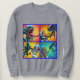 Astronautas em roupas elegantes e retro-futurísticas à medida que se deparam com aliens gigantescos e ferozes no estilo de pop de quadrinhos — criaturas vívidas e grotescas de com cor azul-metalúrgica. Suas longas línguas pingam com saliva ácida que pode corroer o metal mais forte encontrado em qualquer planeta A batalha gira com linhas de movimento exageradas, efeitos sonoros exagerados—ZAP! BAM!—e imagens dramáticas e de alto contraste que dão à cena uma energia dinâmica e surreal.