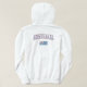 Este número tem a palavra "Austrália" num tipo colegial num arco sobre a bandeira australiana, ambos em estilos angustiados/vestidos A bandeira tem a bandeira da União (ou bandeira da União) no canto superior esquerdo e seis estrelas num campo azul.