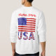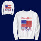 Camisola personalizada, de uso masculino, com a bandeira dos Estados Unidos da América, ou bandeira americana com as letras EUA abaixo, em vermelho, branco e azul, com estrelas e listras, encontradas na bandeira. Personalize adicionando um nome para um presente criativo ou para você mesmo. Legal para as comemorações de 4 de julho e reuniões familiares.